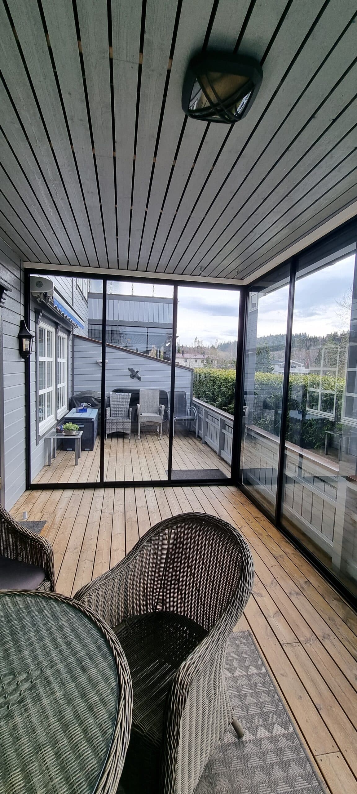 Dette uterommet kan brukes som en ekstra stue, plass til å spise eller kanskje for oppbevaring. Vi hjelper deg fram til målet og et resultat du blir fornøyd med i mange år framover!